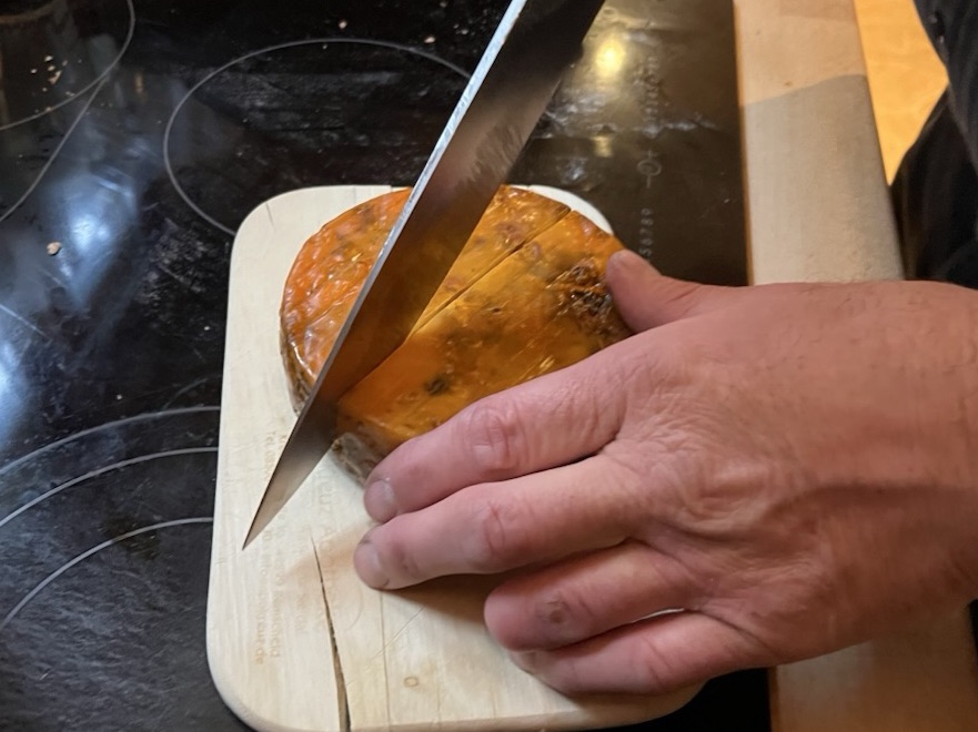 Herausforderung beim Schnittkäse: er bekommt ein Coating und muss dann ca. 8 Wochen reifen – 4 Wochen reichen auch
