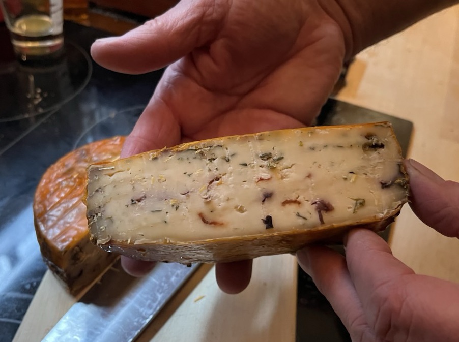 Dürfen wir vorstellen: unseren ersten Schnittkäse (aus Kuhmilch) mit Wiesenkräutern – wohlduftend und sehr lecker