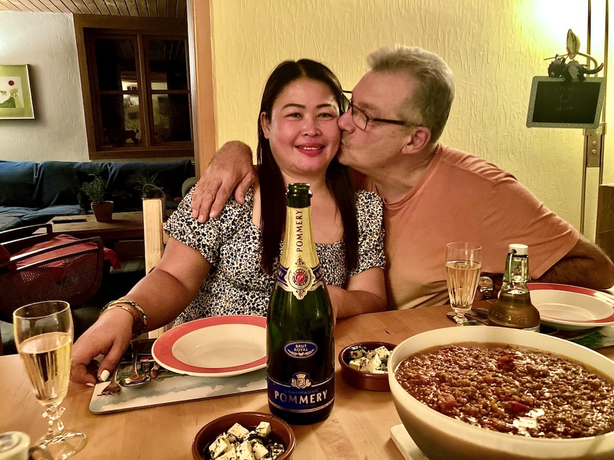 … und gegen 20.30 Uhr bei uns zum Spaghetti Bolognese- Hochzeitsessen mit Champagner