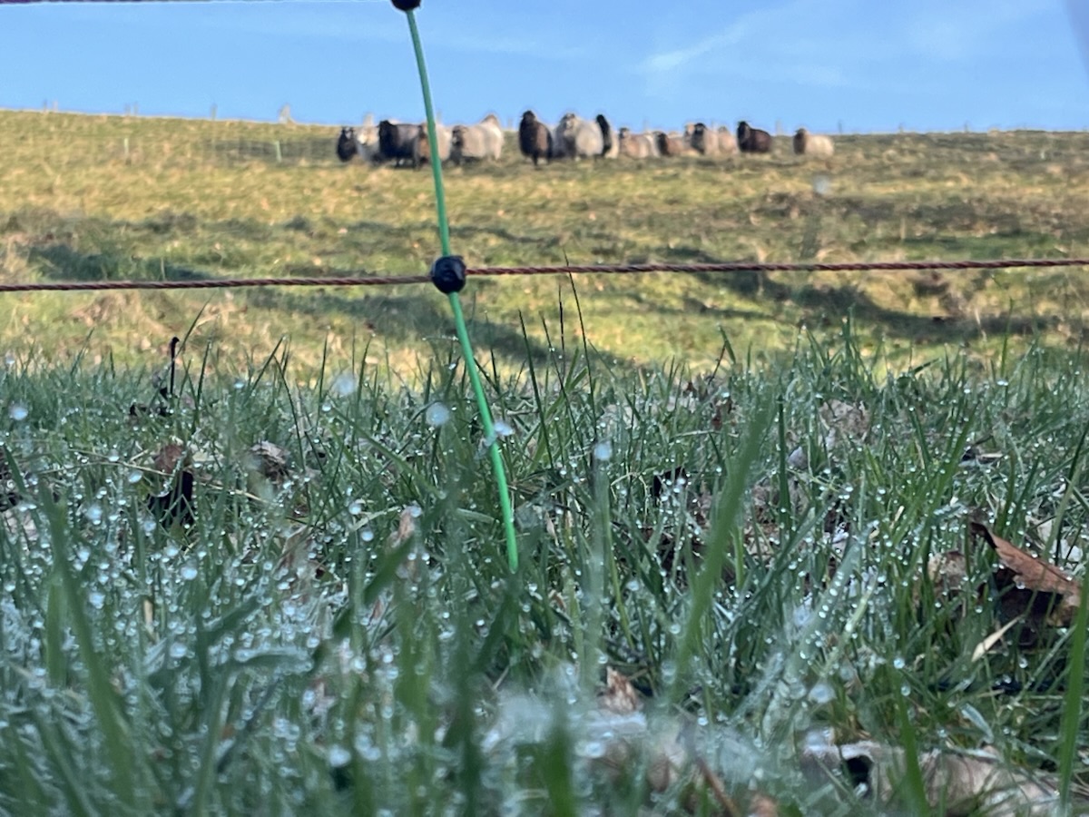 Nachts sind sie sicher hinter dem Stromzaun, morgens wird der Pferch geöffnet, so dass sie die ganze Weide zur Verfügung haben. Der geöffnete Zaun wird wieder unter Strom gesetzt, damit sich keine Dame im Zaun erhängt; hatten wir einmal, bitte nie wieder.