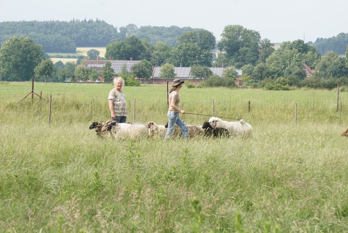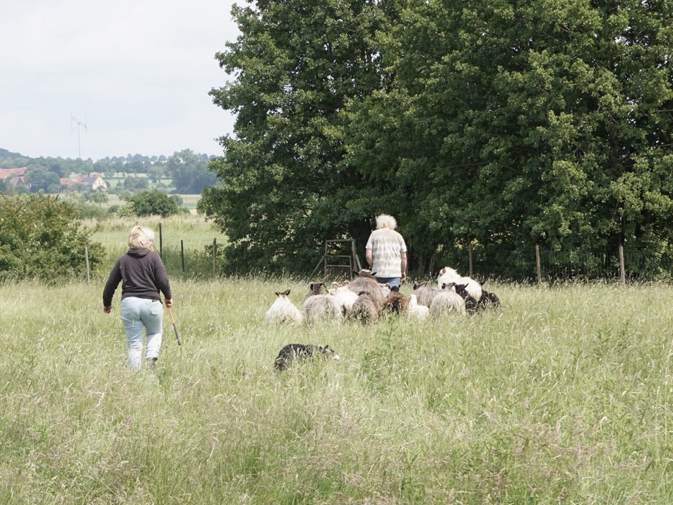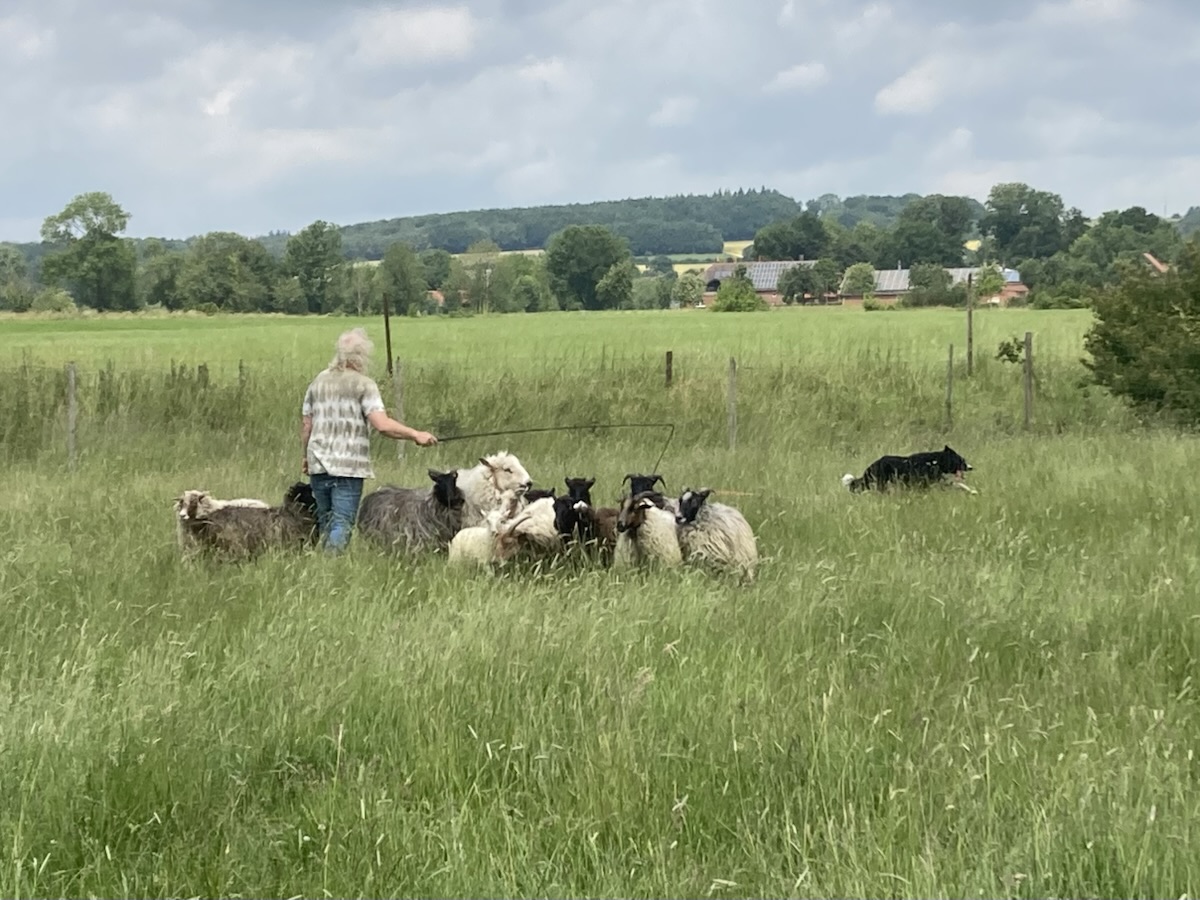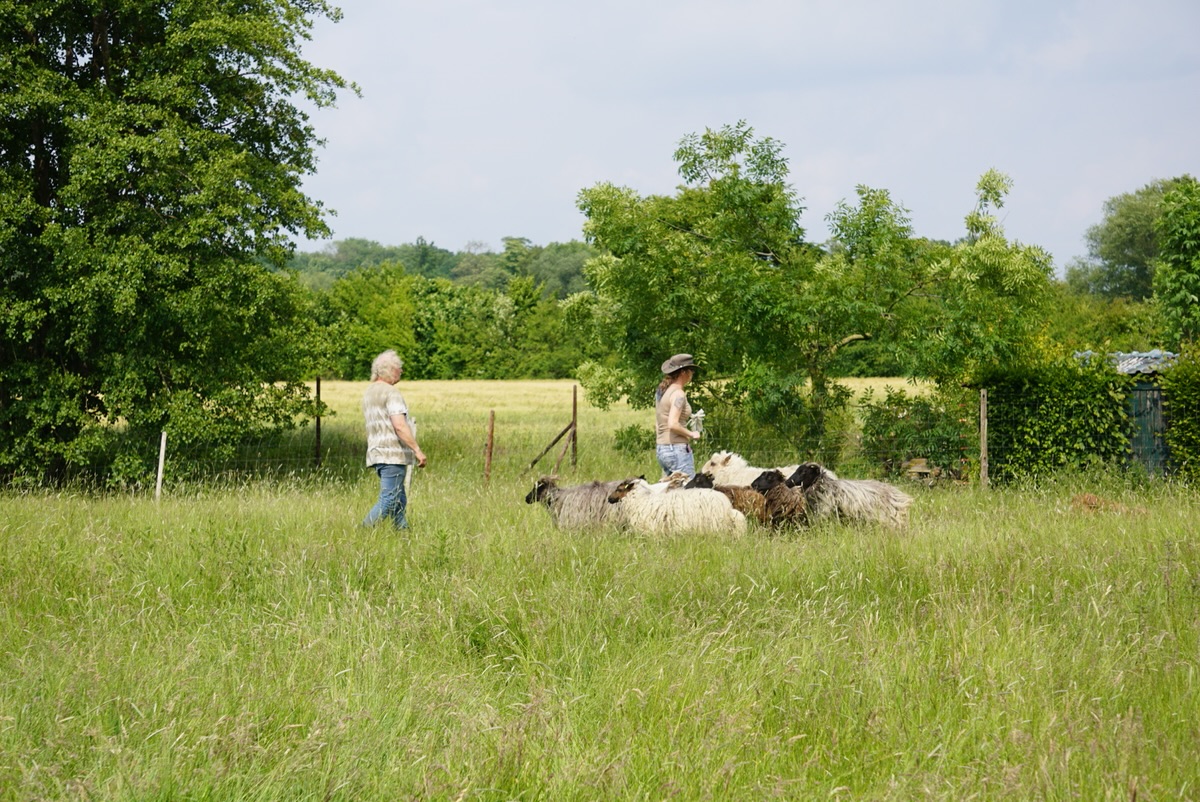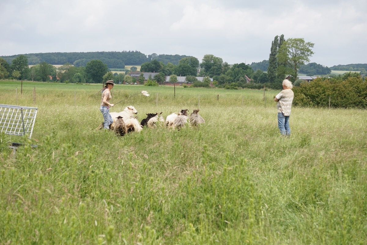 Die Mähdels haben eine Wurmkur, Butox gegen Parasiten und Fußpflege erhalten und waren somit bereit für die Rückreise zur Weide, wo die bereits gestern geschorenen Damen auf sie warten… also ab in den Hänger