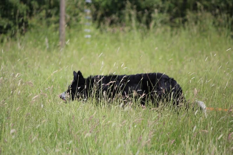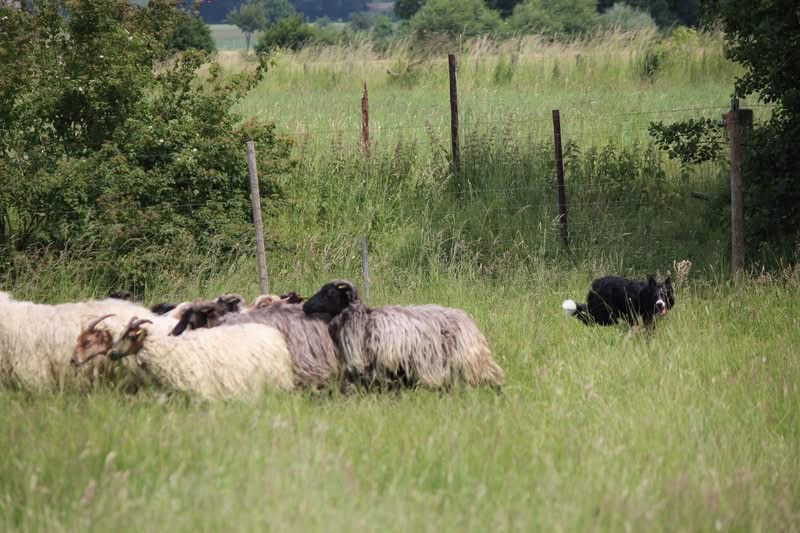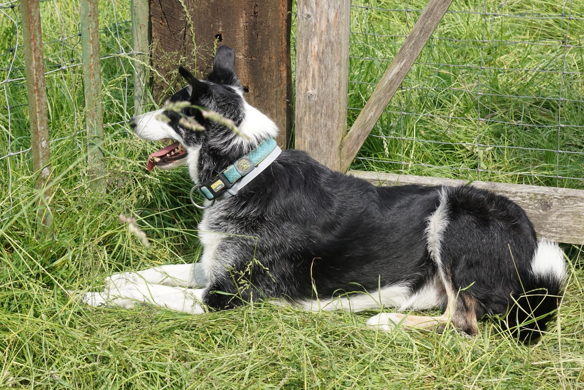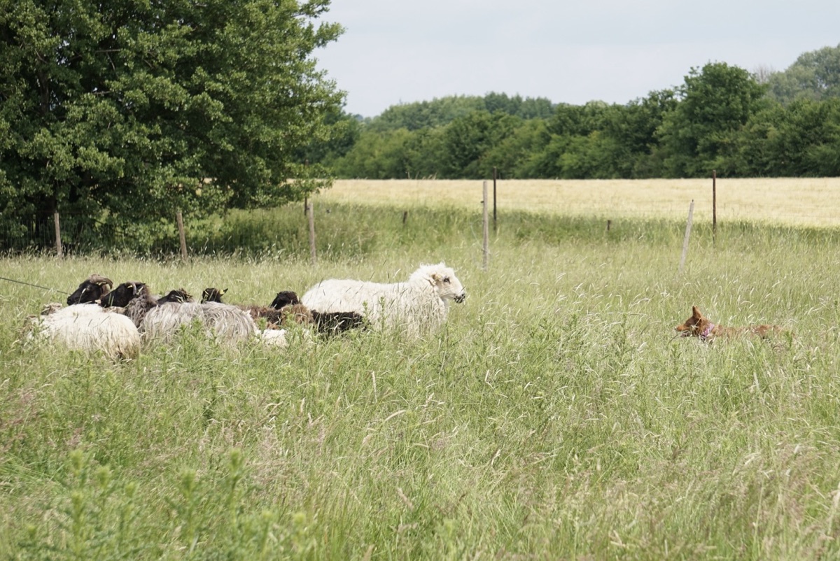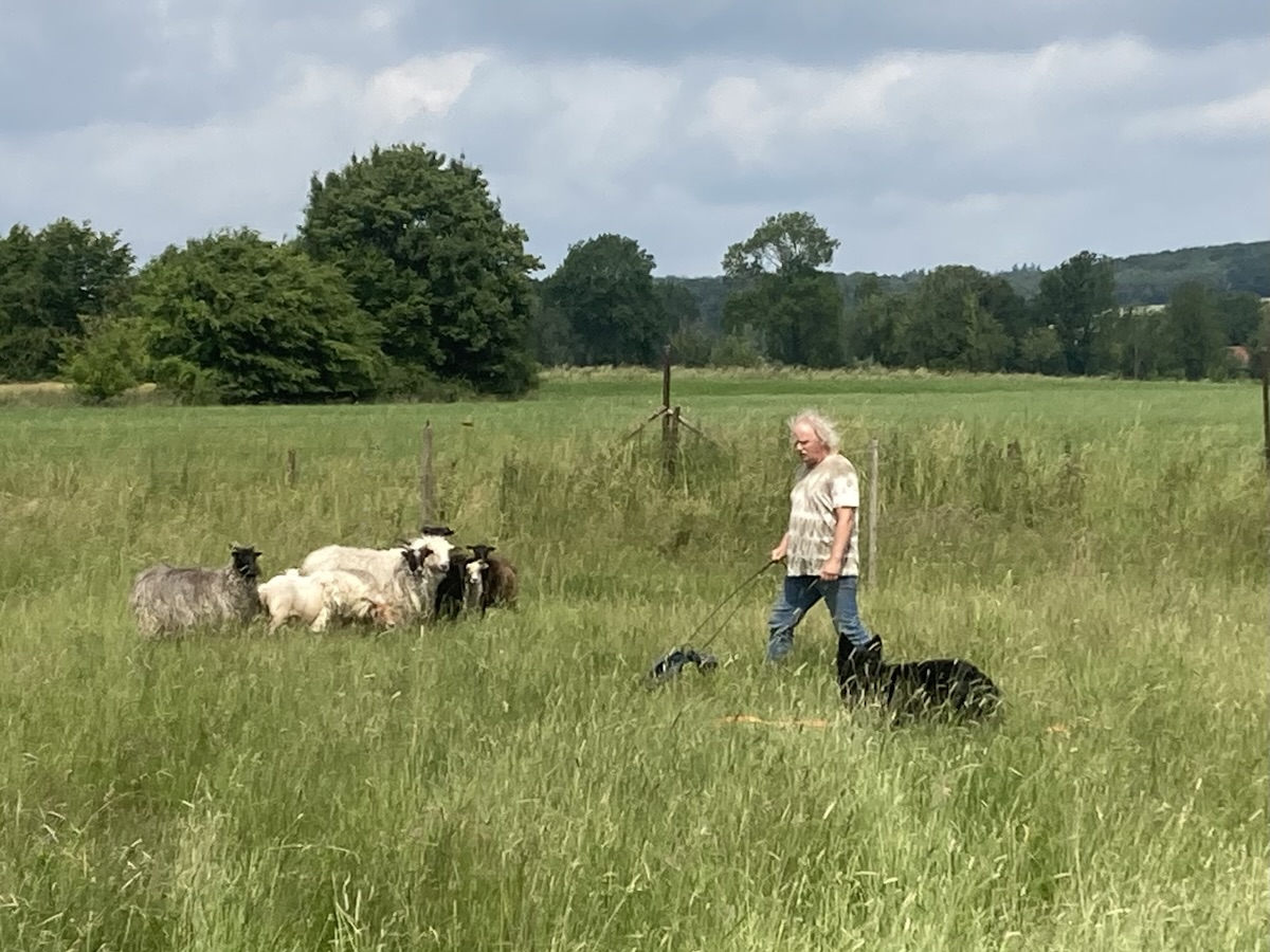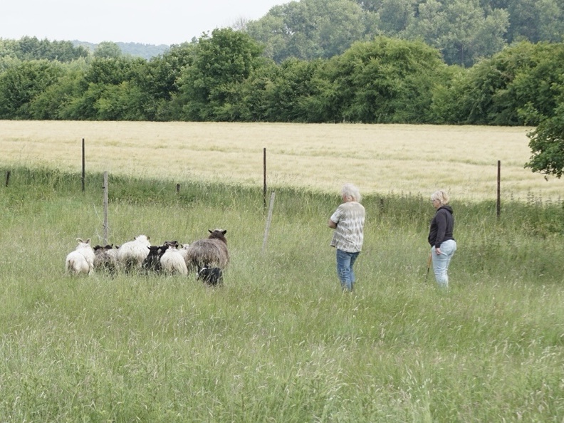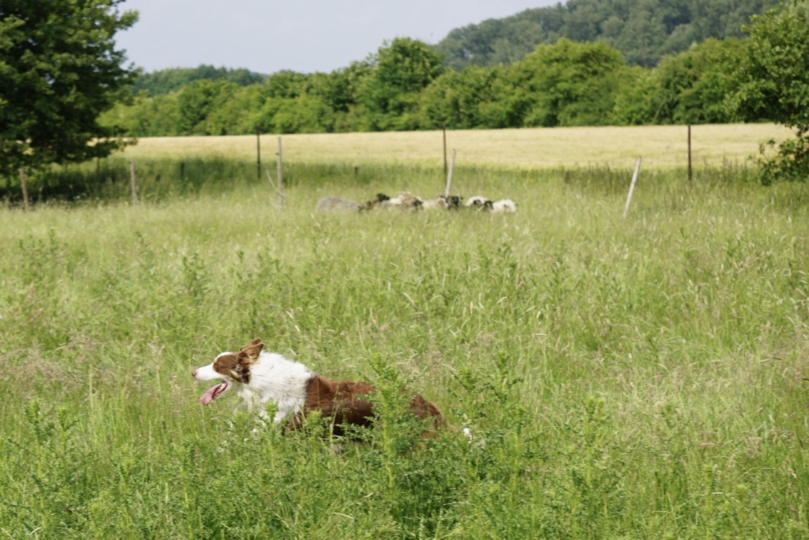 Heute waren die Damen sehr lange auf der anderen Annette- Wiese. Es hat ihnen da soooo gut gefallen, dass sie bis in die letzte Ecke gezogen sind, dass die das Einfüllen der Leckerchen und das Hupen nicht hören konnten – oder wollten. Also habe ich, während Micha Wasser und Leckerchen verteilt hat, mich auf die Suche nach den Damen begeben, um sie abzuholen…
