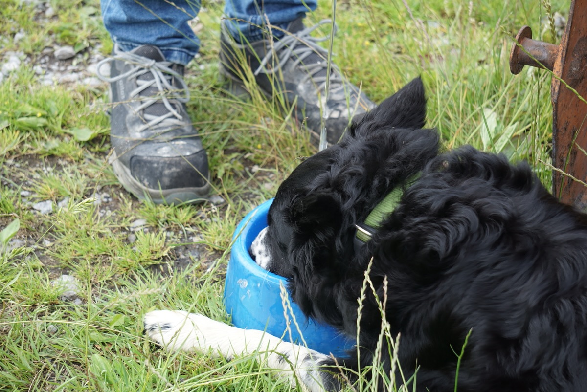 – 2 Zelte aufgebaut, Heuraufe und Wasser hingestellt, (erstmal) einen Zaun drangesetzt